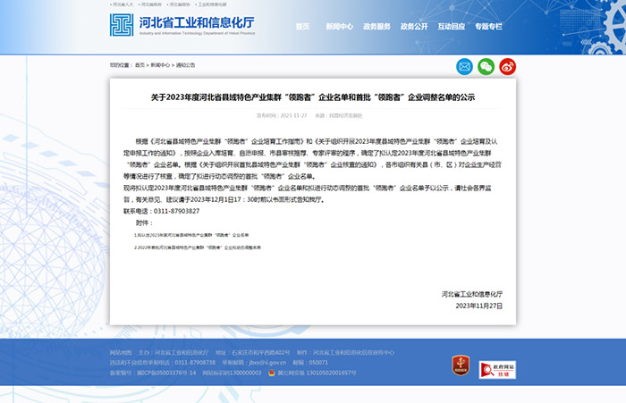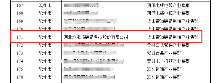 近日,河北省工業(yè)和信息化廳公示了2023年度河北省縣域特色產(chǎn)業(yè)集群“領跑者”企業(yè)名單和首批“領跑者”企業(yè)調整名單。河北滄海核裝備科技股份有限公司榮幸入選其中,成為獲得這一殊榮的企業(yè)之一。