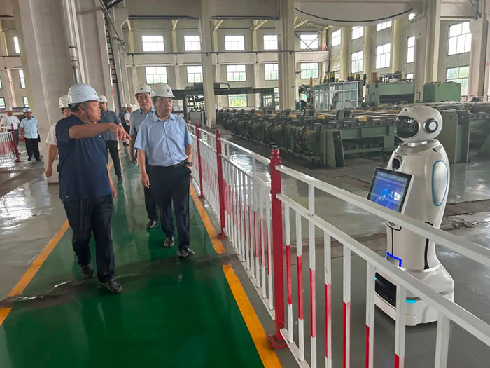 王素文廳長一行參觀了滄海核裝直縫埋弧焊管生產(chǎn)線,詳細了解了滄海核裝的發(fā)展歷程、產(chǎn)能規(guī)模和生產(chǎn)經(jīng)營情況,實地觀摩了5G智能工廠數(shù)字化車間的全流程調(diào)度運行,對滄海核裝智能化的生產(chǎn)現(xiàn)場和精細化的管理模式給予了高度評價。